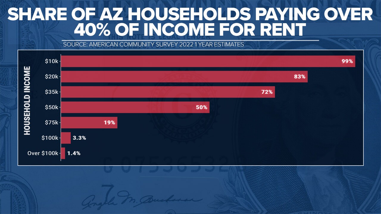 Those households making between $35,000 and $49,999 spend over 50% of their income on rent. For households earning $20,000 to $34,999 that number is 72%. Arizona households making under $20,000 spend over 80% of their income on rent.