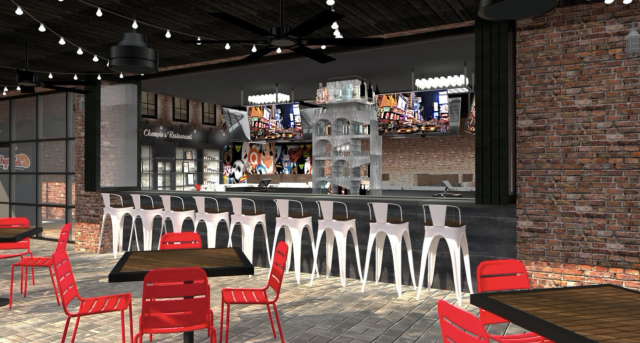 The full-service bar, which will be the restaurant's first location to have one, was inspired by the New York skyline and features tributes to Time Square's New Year's Eve ball, and the Empire State Building. The outside patio was inspired by Central Park.