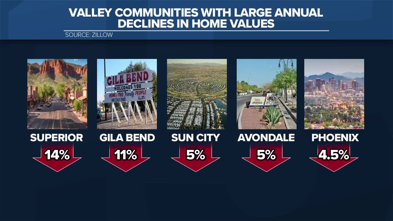 In the video player above, ABC15's data analyst Garrett Archer looks deeper into these numbers and why Phoenix is among the metro areas with the highest year-over-year decline in home values.