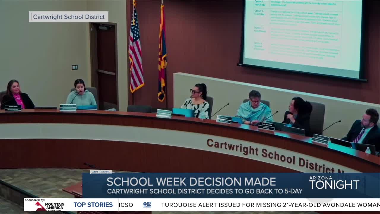 PHOENIX — In a controversial 3-2 vote on Wednesday night, the Cartwright School District board voted to switch the district back to a five-day school week.