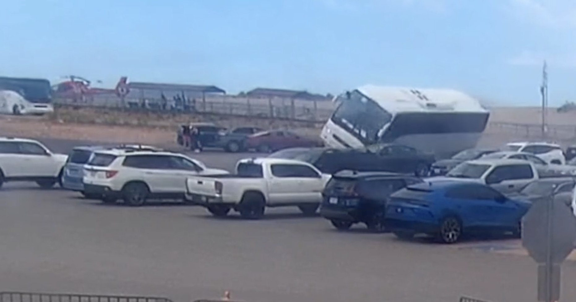 The August 2023 crash killed Landri Burgart, and eight people were so severely hurt they required air transport from the scene, according to the crash report. Surveillance video shows the tour bus veering off the road near the parking lot, hitting a ditch, rolling over, and smashing into three parked cars.