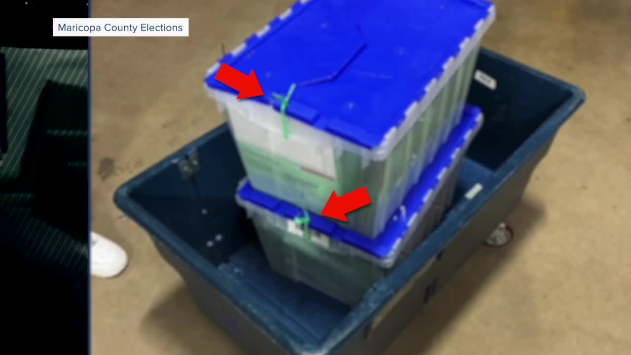 The bins were secure with their tamper-evident seals, according to officials, but poll workers had mistakenly placed the bins back into the drop box instead of transporting them separately to the Maricopa County Tabulation and Election Center.