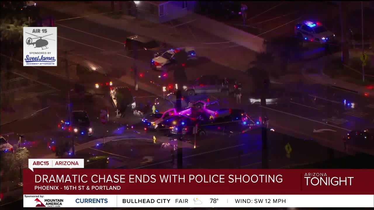 A pursuit began near 7th Avenue and Osborn Road, where a man was firing off a gun from his vehicle. According to officials, the shooting continued throughout the pursuit near Roosevelt Row.