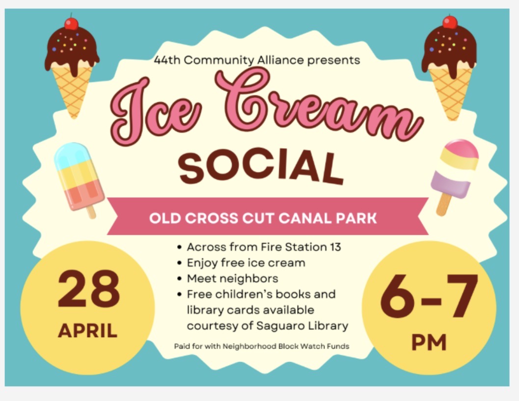 PHOENIX — On Tuesday night, the 44th Community Alliance is hosting an ice cream social to connect neighbors in East Phoenix, provide a space where people can work on issues together, and give out free books to kids.