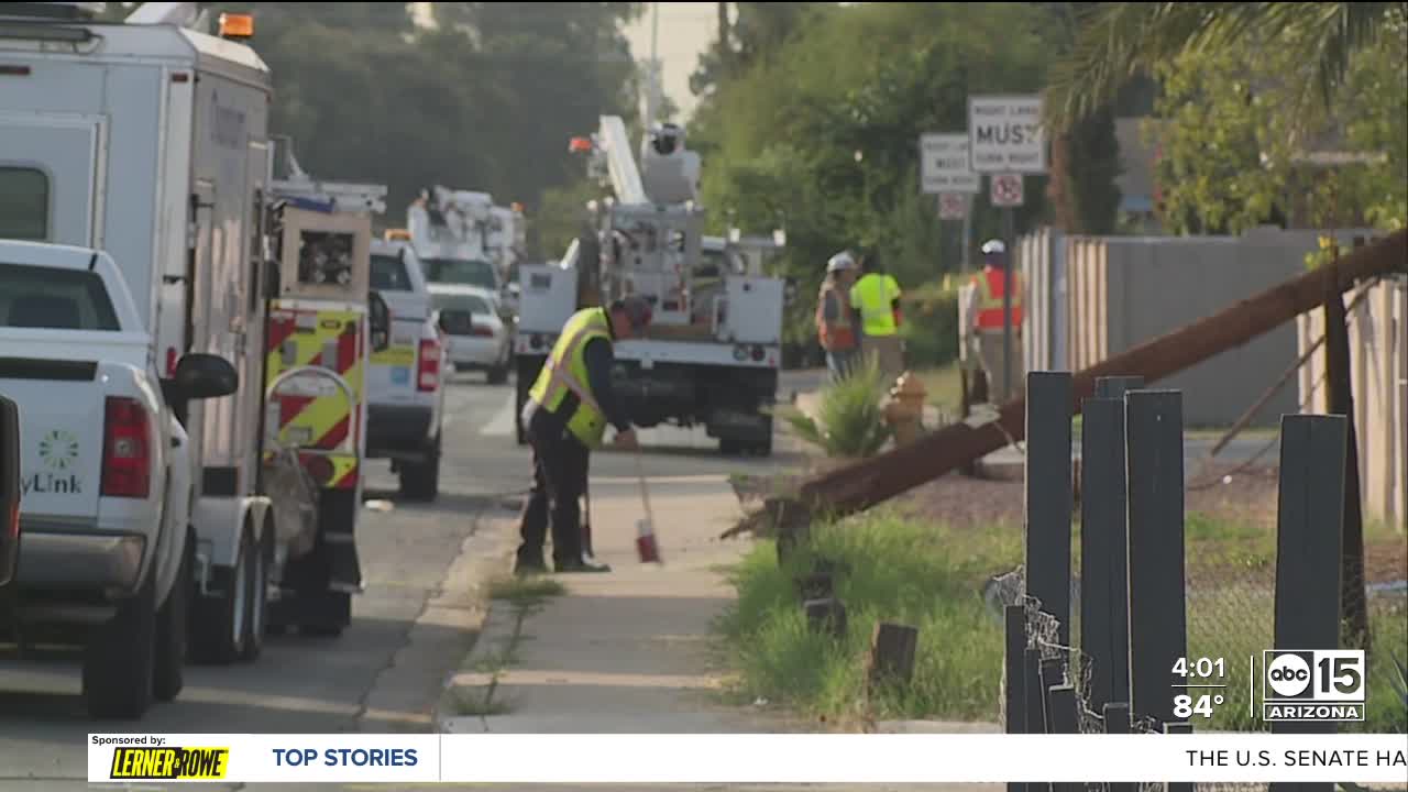 PHOENIX — Crews are working to clean up power poles that were knocked over by a semi-truck in a Phoenix neighborhood.