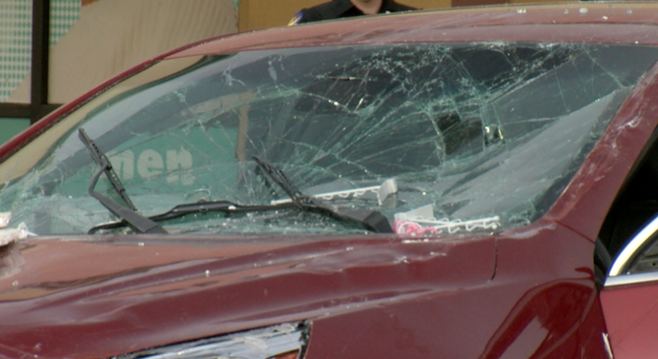 During the incident, a customer was hit while inside the store. She was taken to a hospital with serious, but non-life-threatening injuries.
