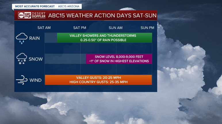 This storm could impact your outdoor plans across the Valley this weekend, so Saturday and Sunday will be ABC15 Weather Action Days as a reminder to take action to stay safe in the storm.