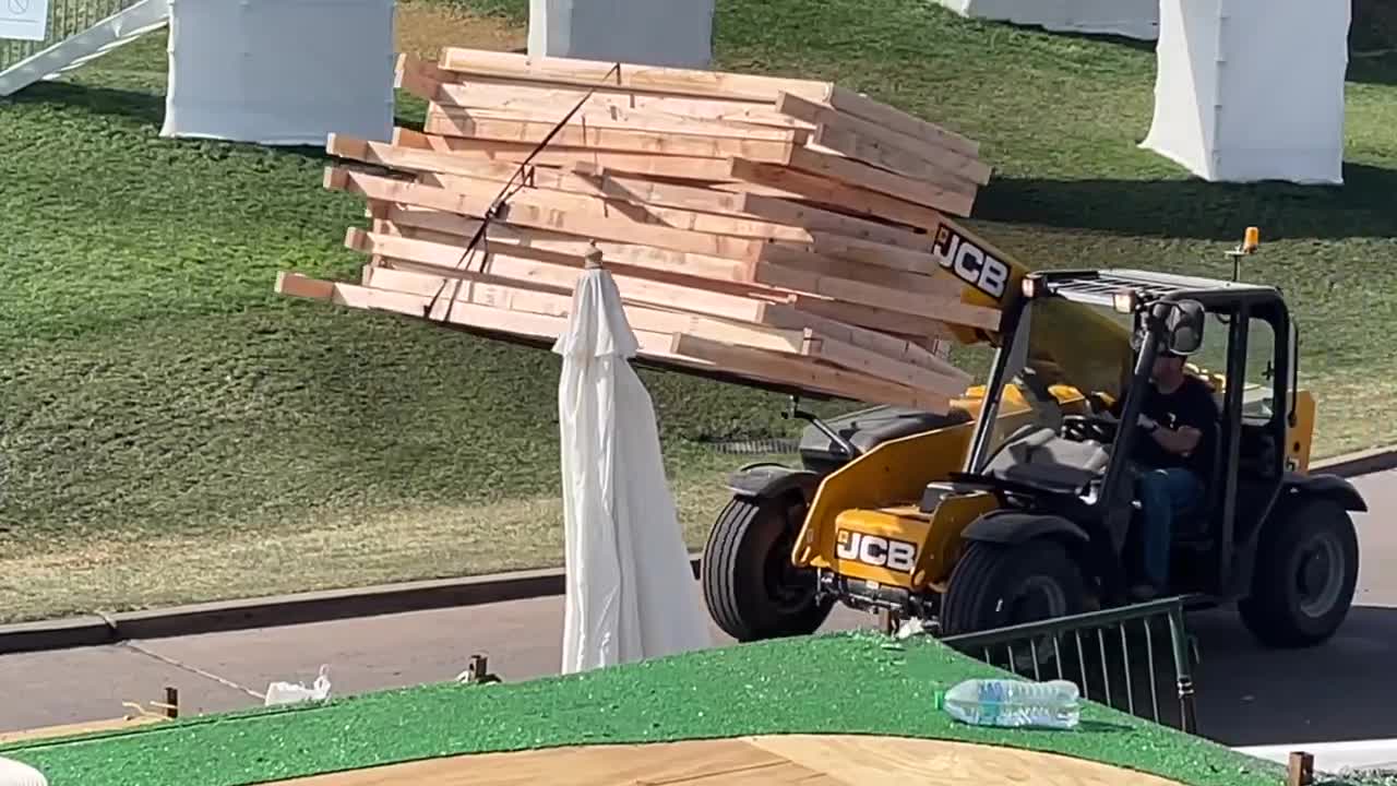 “The scrim, the white siding that you see on a lot of the structures out here can actually be converted into a trash or a recycling cart which actually goes to someone’s house to be used for their recycling or trash bins,” said Chris Henk, Senior District Manager for Waste Management in Phoenix.