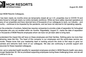 Thousands of MGM Resorts employees will lose their jobs effective Aug. 31, according to a letter sent by CEO Bill Hornbuckle.