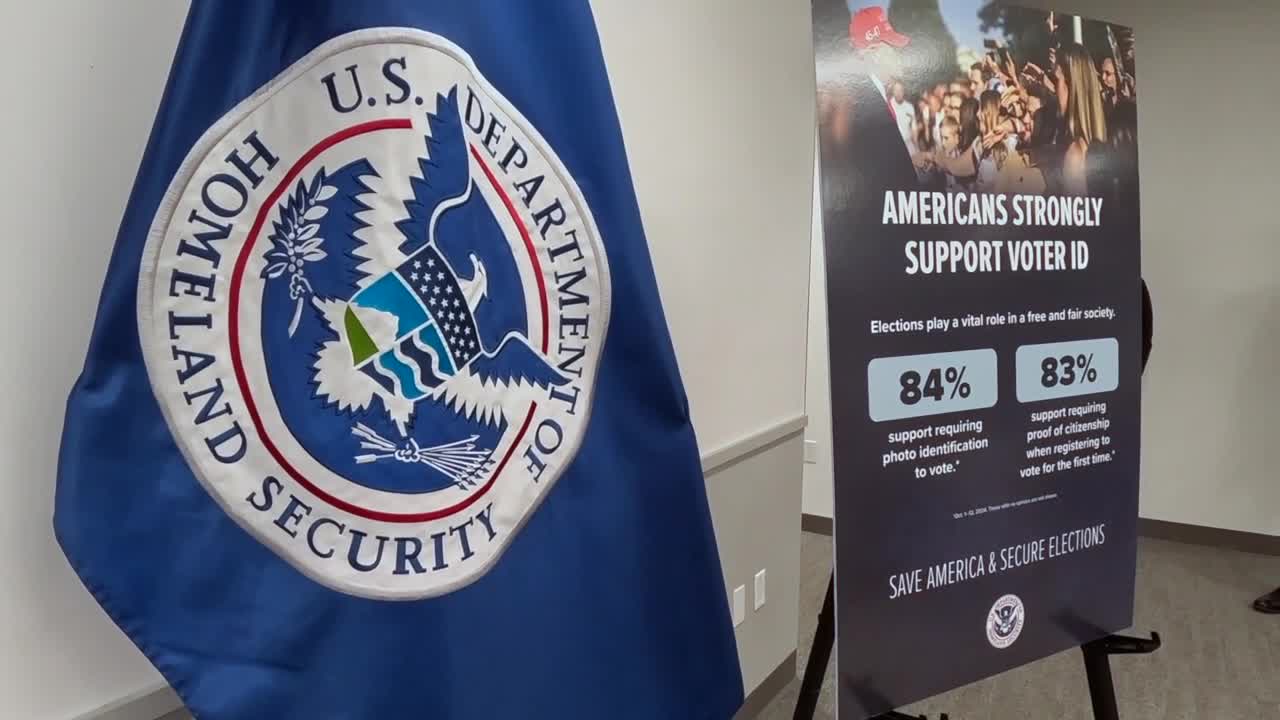 Noem spoke at a press conference on election security hours before her agency was set to run out of money and pushed for passage of federal legislation to mandate voter ID and proof of citizenship to register to vote.