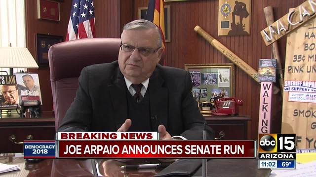 Former Maricopa County Sheriff Joe Arpaio announced Tuesday that he is running for the U.S. Senate seat now held by Jeff Flake.
