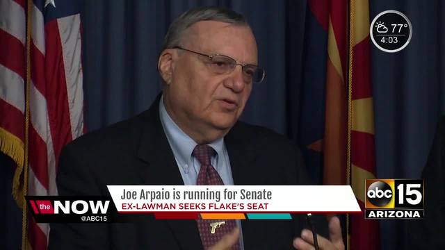 PHOENIX - Former Maricopa County Sheriff Joe Arpaio announced Tuesday that he is running for the U.S. Senate seat now held by Jeff Flake.