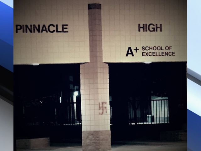 The graffiti was found at Pinnacle High School. School district leaders say they’ve removed the graffiti and are cooperating with the police investigation.