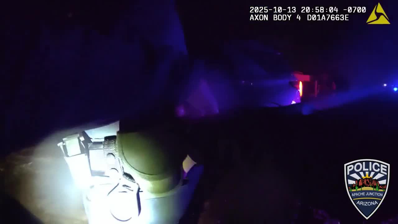 APACHE JUNCTION, AZ — Dramatic video shows the moments Apache Junction police officers jumped into action to rescue a man whose vehicle was swept away by fast-moving water.