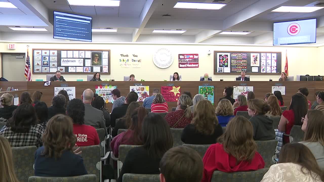 CHANDLER, AZ — With a budget shortfall of $12 million next school year, the Chandler Unified School District board faced the emotions of teachers and parents over a proposal to eliminate and combine certain jobs at their schools.