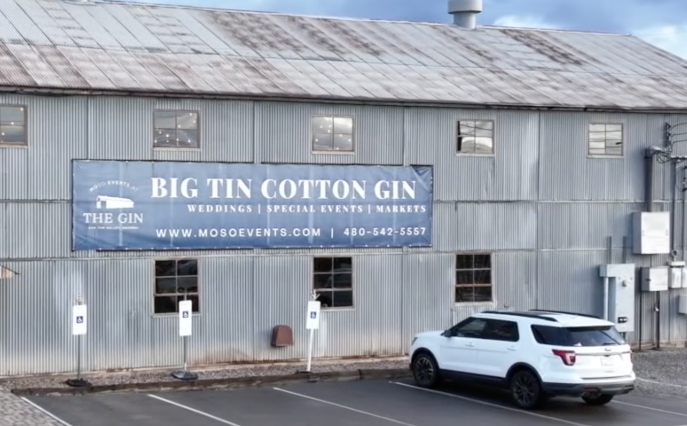 For seven years, the Ballentyne family has leased the Big Tin Cotton Gin on the corner of Ocotillo and Meridian roads, serving as a backdrop for weddings and special events. But the building's history stretches back much further — nearly 70 years — to a time when it helped build the town itself.