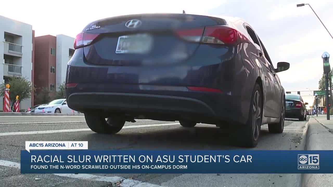 TEMPE, AZ — An ASU student is viewing his surroundings more cautiously after someone wrote the n-word on his car. He was parked outside his on-campus dorm room, on Apache Boulevard, near McAllister Avenue.