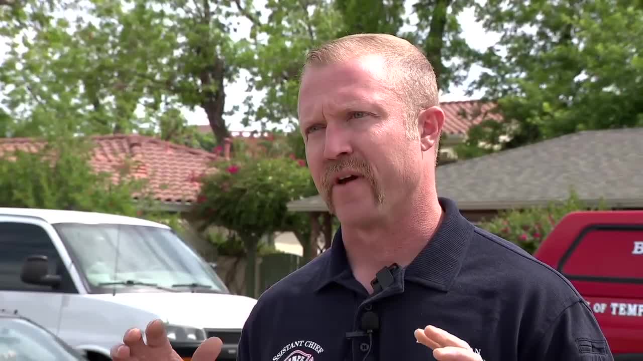 Emergency crews were called to a residential neighborhood near Mill Avenue and Apache Boulevard around 8:30 a.m. for reports of a tree trimmer stuck in a tree.