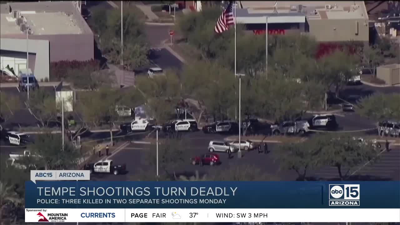 TEMPE, AZ — Two people have died after a shooting at a shopping center in Tempe on Monday morning, police say.