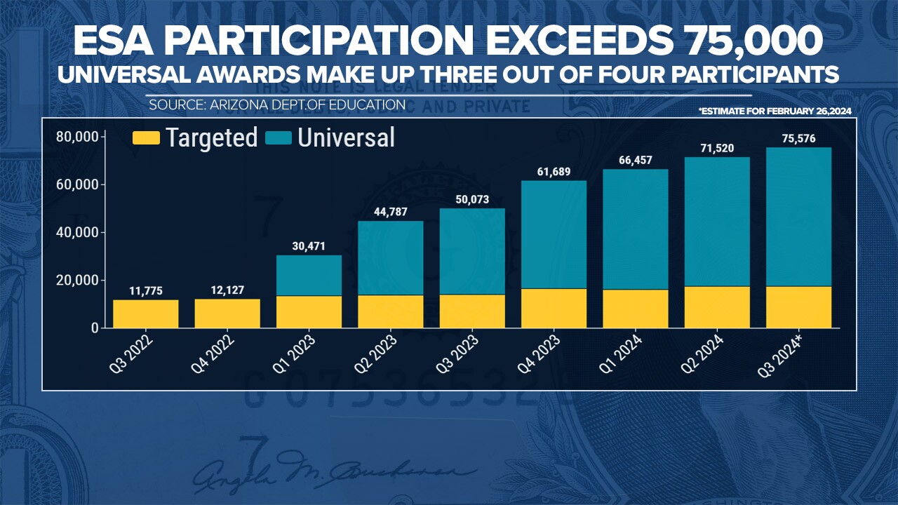 When it comes to the ESA program, there are two programs side by side. Targeted ESA awards are mostly geared toward children with learning disabilities. Universal ESA is the program that began last year after being signed into law by former Governor Doug Ducey which allots approximately 90% of per-pupil funding to parents to manage their child’s education themselves.