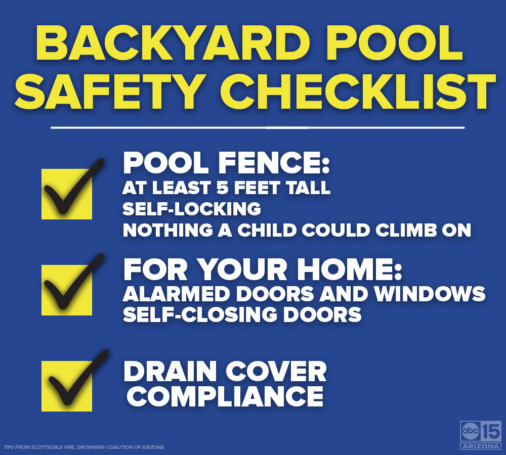 PHOENIX — If you haven't already, safety advocates are reminding you to check your backyard swimming pool to make sure the proper equipment is in place this summer.