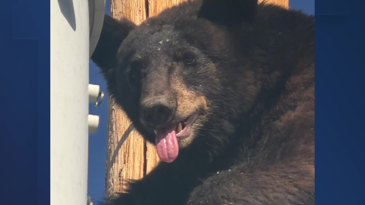 Officials say the bear made it down the pole safely — though it did instantly try to go to another pole nearby — before running off into the distance.