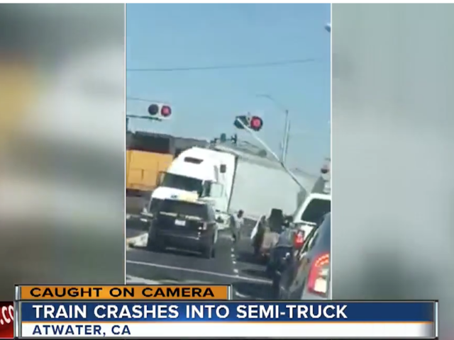Train crashes into semi-truck in California
