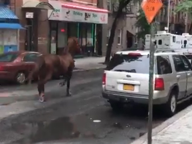 Carriage horse runs through rush hour traffic