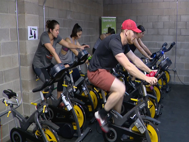 Gym spin class pedals up power