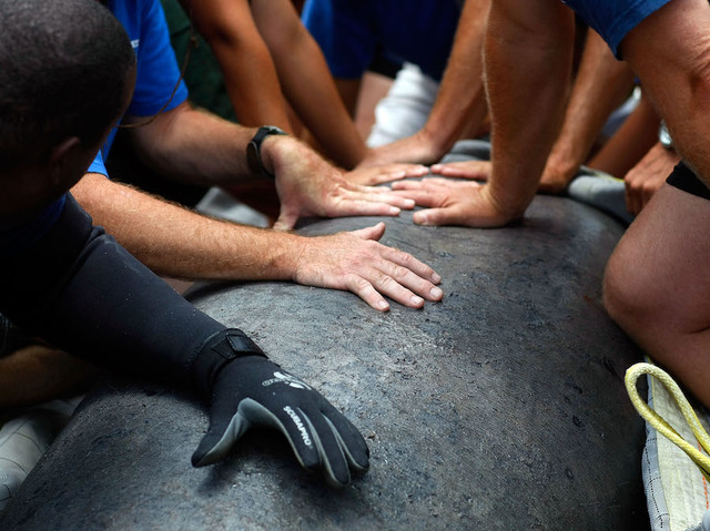 Strangers rescue suffocating manatees