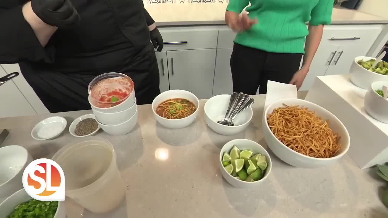 Once the soup is ready, dish into individual bowls and top with the tortilla strips and any other desired garnish. Enjoy!