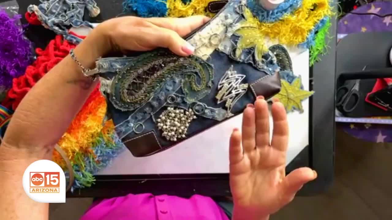 Craft Queen demonstrates how she repurposes handbags with cute fabric, embellishments and jewelry
