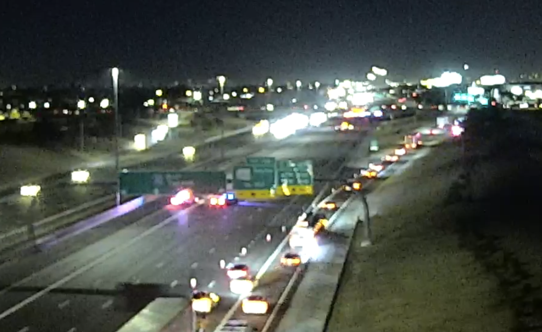 Officials say the collision occurred around 7:45 p.m. in the eastbound lanes of travel. A pickup truck reportedly struck a passenger car, which then struck a concrete median wall.