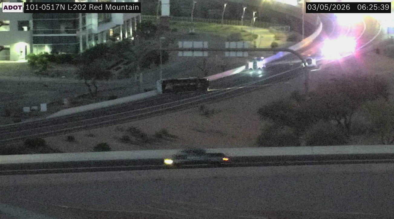 According to the Arizona Department of Transportation, the crash is blocking both transition ramps from Loop 202 Red Mountain eastbound to Loop 101 north and southbound.