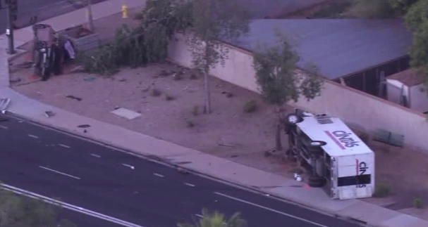 Gilbert Police Department said two adults were extricated from their vehicles, which both came to rest on their sides off the roadway.