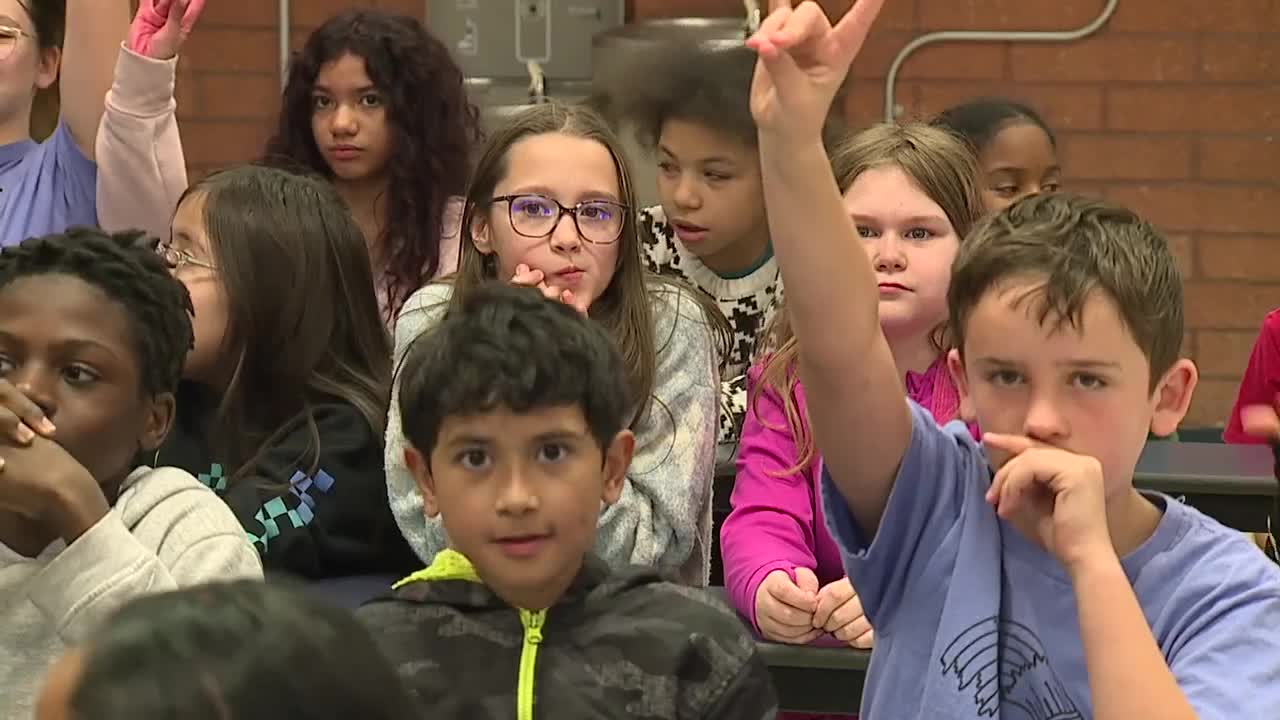 Dozens of third, fourth, and fifth graders packed the gym for an interactive weather assembly near 36th Street and Knox Road. Students asked questions, learned how forecasts come together, and got a behind-the-scenes look at what it takes to stand in front of a camera.