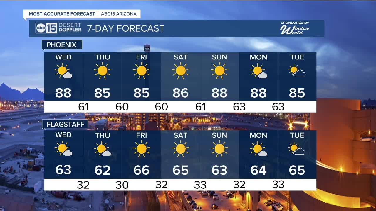 We're expecting some passing clouds at times, but there are no chances for rain as our forecast stays dry across Arizona this week.