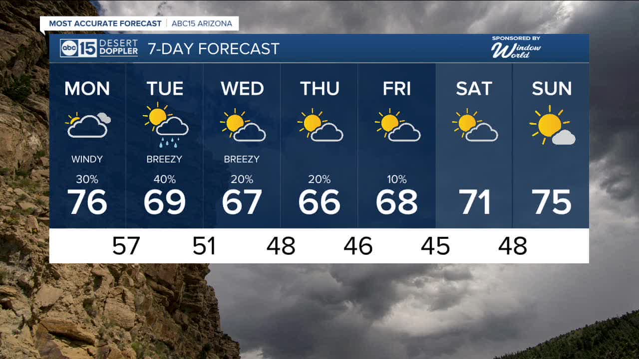 It will also be breezy to windy at times this week across parts of Arizona. Gusts in the Valley could reach 30 mph.