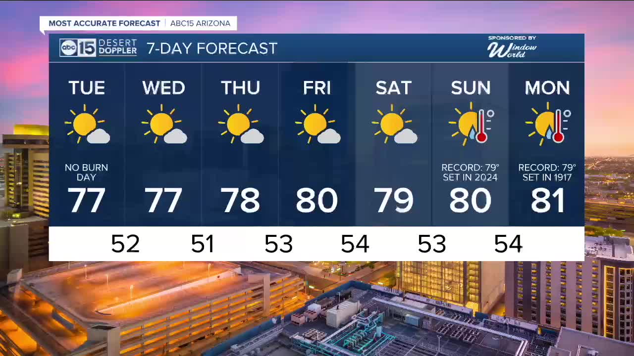 Valley highs will drop back into the upper 70s and out of record-territory for the rest of the week, but normal for this time of year is mid-60s.
