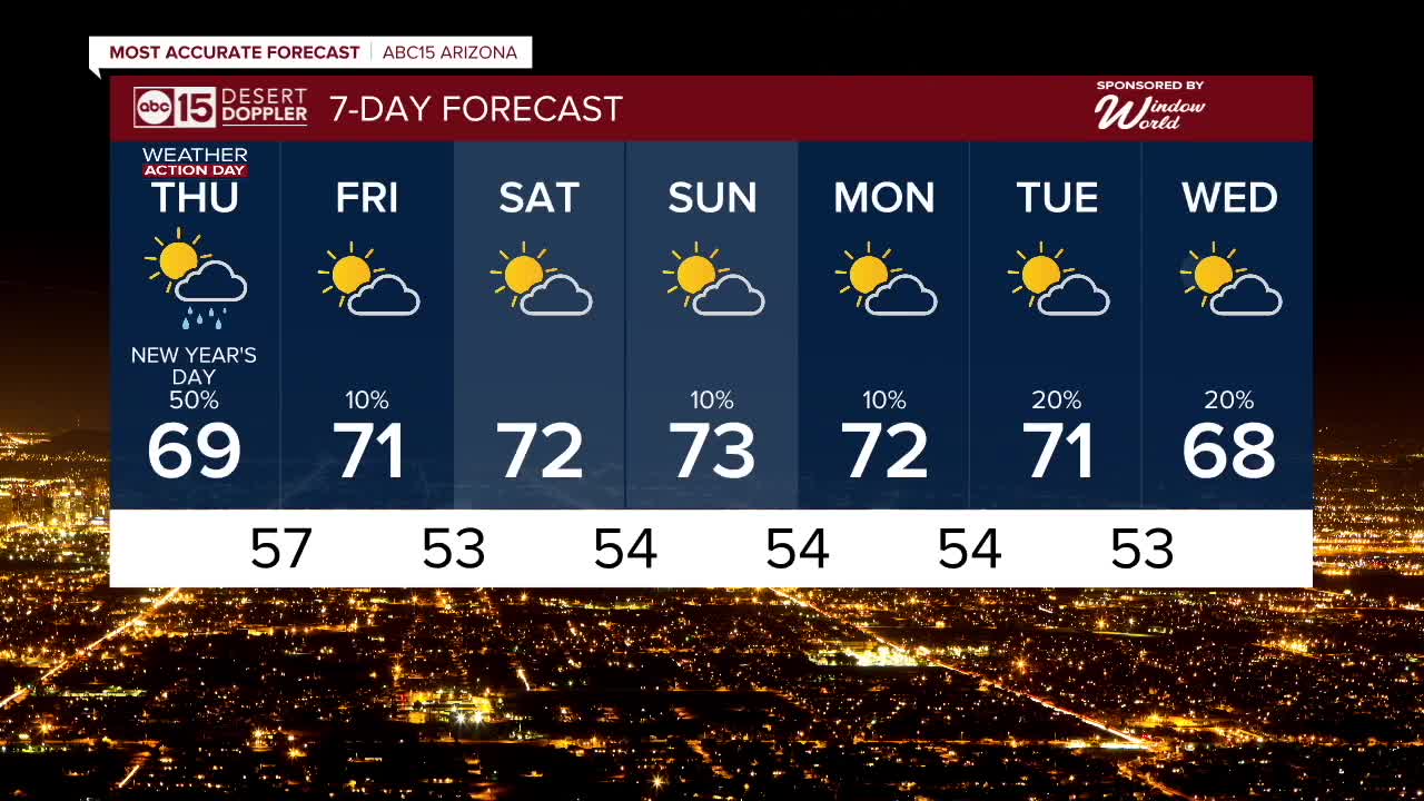Temperatures will drop a few degrees, bringing Valley highs down into the upper 60s on New Year’s Day.
