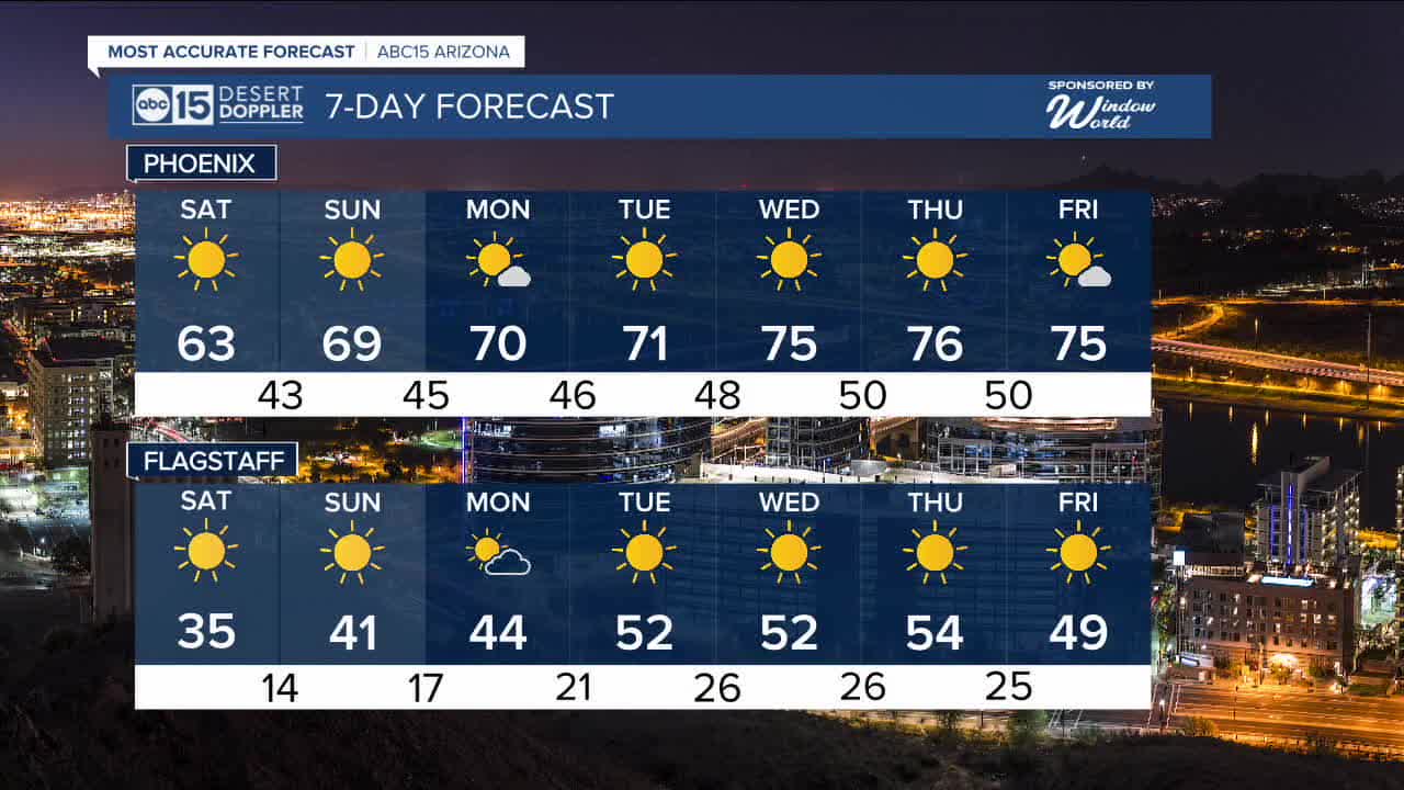 Highs will be back in the 70s here in the Valley by Monday, with overnight lows climbing into the mid 40s to low 50s next week.