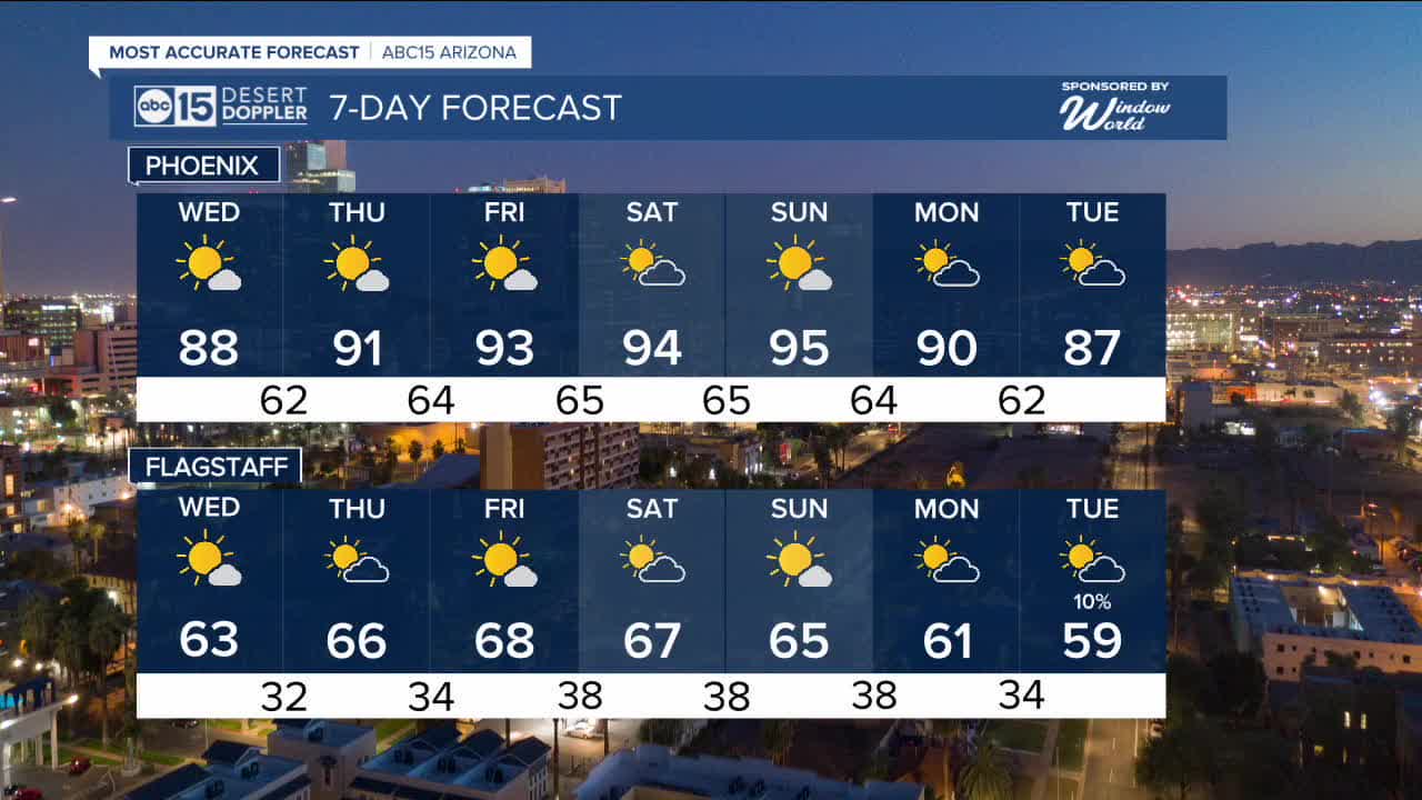 It's not just a one and done day in the 90s, either. Phoenix could hit the 90s 5 days in a row, starting Thursday and continuing through next Monday.