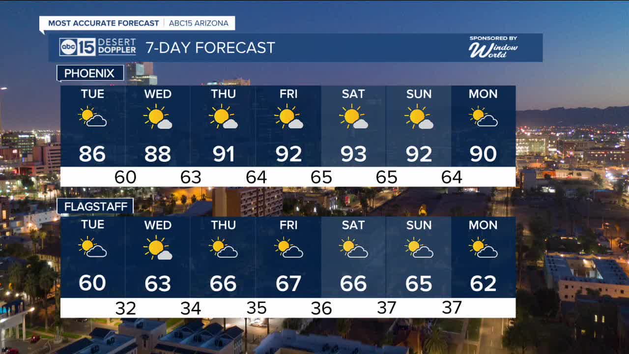 It's not just a one and done day in the 90s, either. Phoenix could hit the 90s 5 days in a row, starting Thursday and continuing through next Monday.