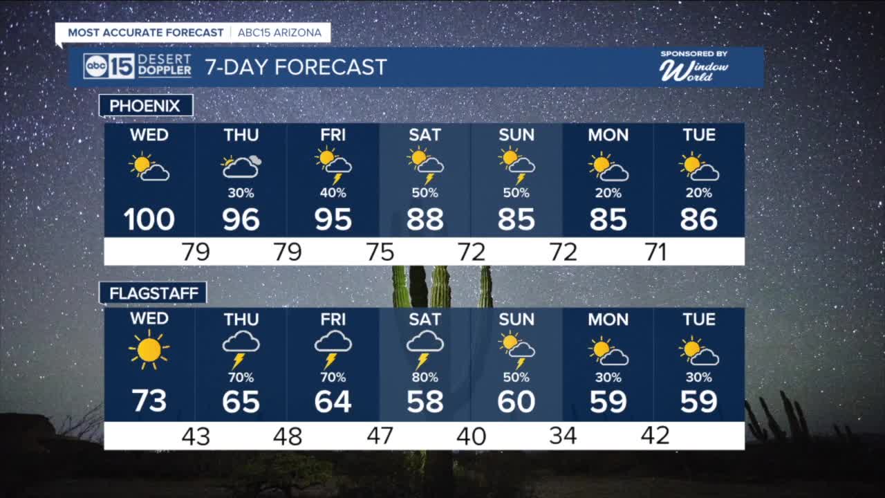 Heading into Wednesday the Valley will stay dry and warm, with highs well into the upper 90s across the Valley with a few cities reaching 100 degrees.