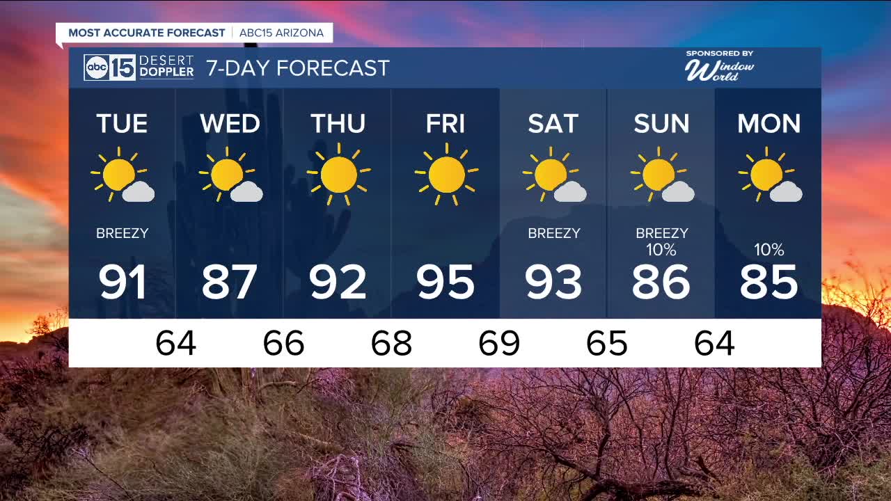 Phoenix will be back in the mid 90s by Friday and Saturday with overnight lows in the mid to upper 60s.