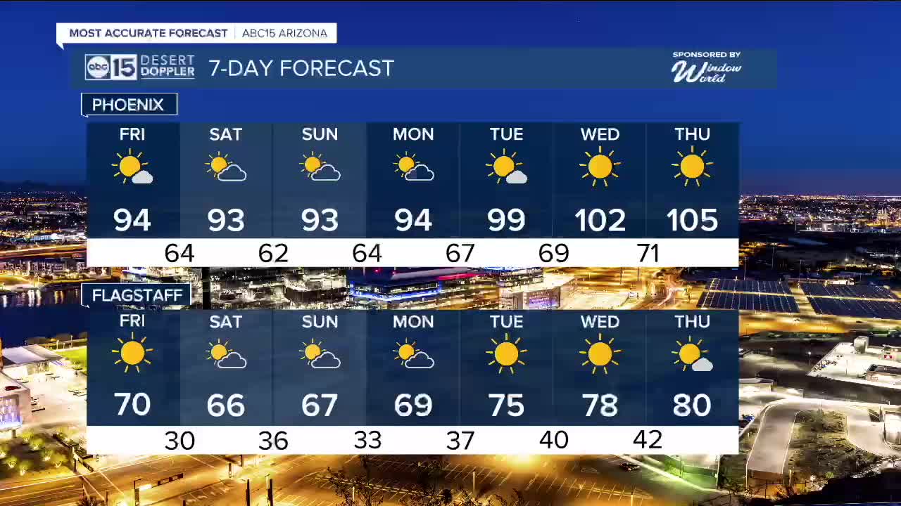 By next Thursday, Phoenix could even climb to 105 degrees, which is nearly 30 degrees above normal! We typically don't see temperatures near 105 degrees until the end of May.