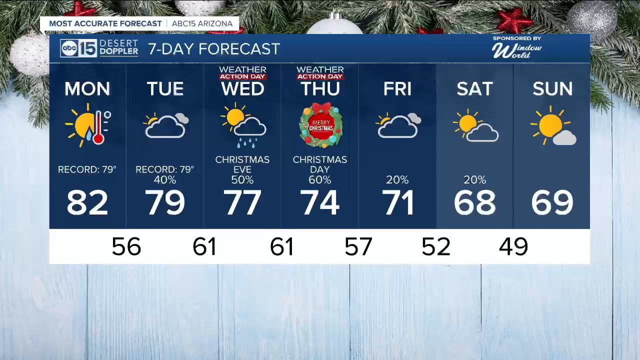 Changes arrive by Christmas, with cooler temperatures and increasing rain chances across Arizona.