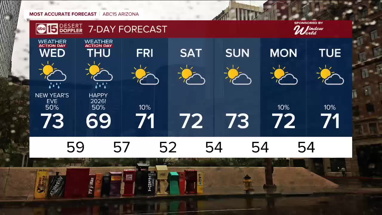 PHOENIX — We’re keeping a close eye on our next storm system, which could impact New Year’s Eve and New Year’s Day plans across Arizona.