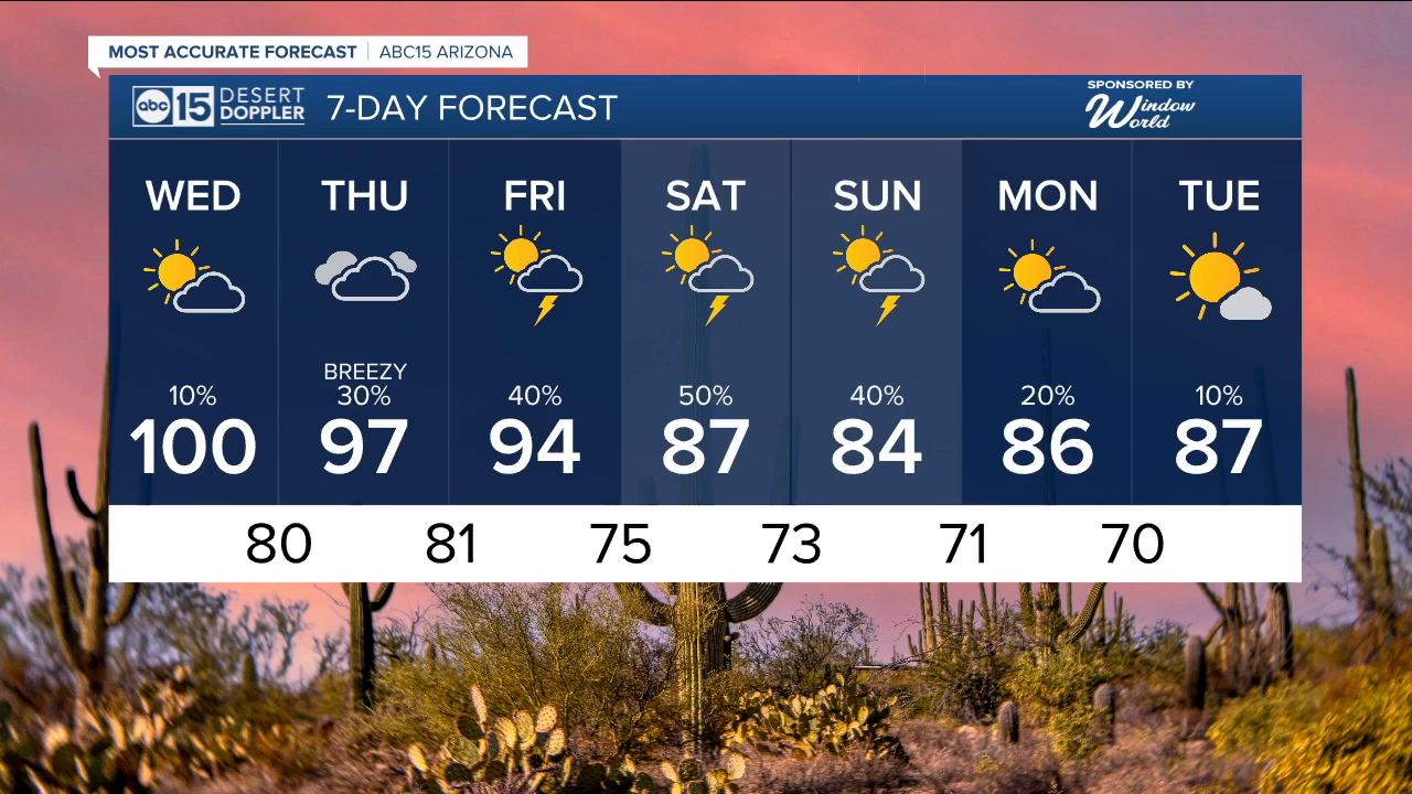 It'll stay hot on Wednesday with highs across the Valley climb into the upper 90s, with a few spots likely hitting 100.