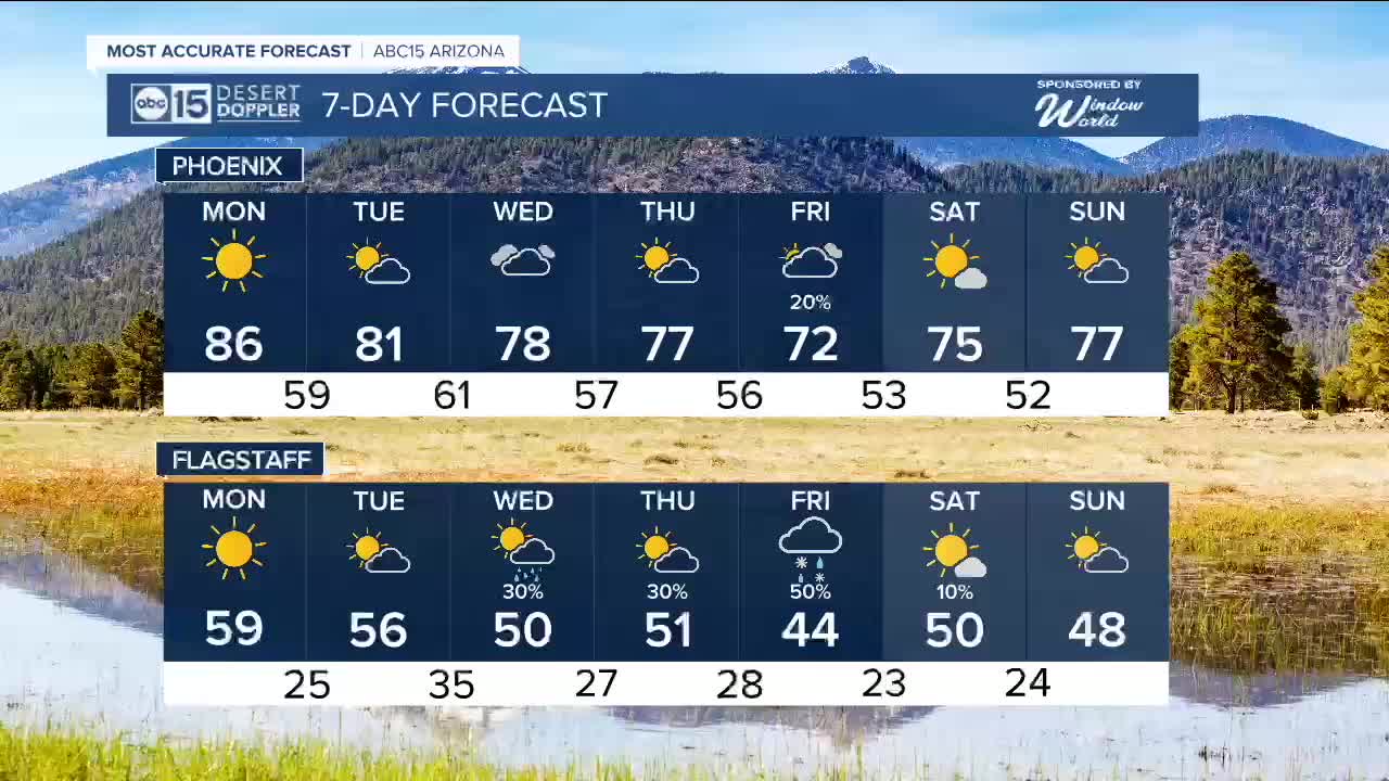PHOENIX — The start of the week will stay unusually warm, with temperatures running 10 to 15 degrees above normal.
